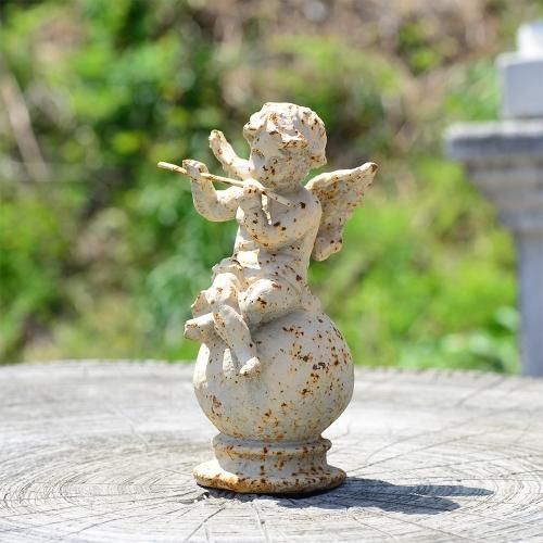 ボールの上に座った天使がフルートを演奏しているオーナメントです。