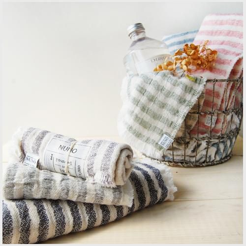ボーダー部分に上質なリネンを使用しているので、リネンのシャリ感を感じていただきながら、タオル織機で織られた柔らかさやふくらみを感じていただける風合いになっています。